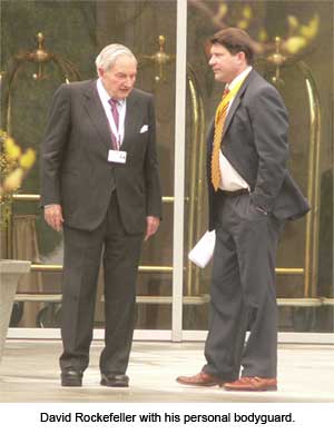 There are about 120 participants that are invited to the Bilderberg meetings, of whom about two-thirds come from Europe and the rest are from North America; and about one-third are from government and politics, and the other two-thirds are from the fields of finance, industry, labor, education, communications. The meetings are closed to the public and the press, although a brief press conference is usually held at the conclusion of each meeting, to reveal, in general terms, some of the topics which were discussed. The resort areas and hotels where they meet, are cleared of residents and visitors, and surrounded by soldiers, armed guards, the Secret Service, State and local police. All conference and meeting rooms are scanned for bugging devices before every single meeting. Among those who have attended their meetings: Owen Lattimore (CFR, former Director of Planning and Coordination for the State Department), Winston Lord (CFR, Clintons Assistant Secretary of State), Allen Dulles (CIA), Sen. J. William Fulbright (from Arkansas, a Rhodes Scholar), Dean Acheson (Secretary of State under Truman), Gabriel Hauge (Assistant to President Eisenhower, who according to the Wall Street Journal, helped teach Ike what to think; and later became Chairman of Manufacturers Hanover Trust Co.), George Ball (CFR, Johnsons Under Secretary of State from 1961-66, and foreign policy consultant to Nixon), Philip Jessup (representative to the International Court), Henry A. Kissinger (Chairman, Kissinger Associates), David Rockefeller (Member, JP Morgan International Council), Nelson Rockefeller, Laurance Rockefeller, Dean Rusk (Kennedys Secretary of State and former President of the Rockefeller Foundation), Gerald Ford, Henry J. Heinz II (Chairman of the H. J. Heinz Co.), Sen. Henry M. Jackson, Sen. Jacob J. Javits (NY), Prince Philip of Great Britain, Lord Louis Mountbatten, Denis Healy (former British Defense Minister), Manlio Brosio (Secretary of NATO), Wilfred S. Baumgartner (Bank of France), Guido Carli (Bank of Italy), Thomas L. Hughes (President of the Carnegie Endowment for International Peace), Robert S. McNamara (Kennedys Secretary of Defense and former President of the World Bank), Margaret Thatcher (Prime Minister of England), Valery Giscard DEstaing (President of France), Harold Wilson (Prime Minister of England), Edward Heath (Prime Minister of England), William P. Bundy (former President of the Ford Foundation, and editor of the CFRs Foreign Affairs journal), John J. McCloy former President of the Chase Manhattan Bank), Christian Herter (Secretary of State under Eisenhower), Lester Pearson (former Prime Minister of Canada), Shepard Stone (Director of International Affairs for the Ford Foundation), Dirk U. Stikker (Secretary-General of NATO), Gardner Cowles (Editor-in-Chief and Publisher of Look magazine), Paul G. Hoffman (of the Ford Foundation, U.S. Chief of Foreign Aid, and head of the UN Special Fund), Donald H. Rumsfeld (President Fords and George W. Bushs Secretary of Defense), Father Theodore M. Hesburgh (former President of Notre Dame University), Helmut Schmidt (Chancellor of West Germany), George F. Kennan (former U.S. Ambassador to the Soviet Union), Paul H. Nitze, Robert O. Anderson (Chairman of Atlantic-Richfield Co. and head of the Aspen Institute for Humanisitic Studies), Donald S. MacDonald (Canadian Minister of National Defense), Prince Claus of the Netherlands, Marcus Wallenberg (Chairman of Stockholms EnskiIda Bank), Nuri M. Birgi (Turkish Ambassador to NATO), Bill Moyers (journalist), William F. Buckley (editor of National Review), John D. Rockefeller IV (Governor of West Virginia, now U.S. Senator), Cyrus Vance (Secretary of State under Carter), Rep. Donald F. Fraser, Rep. Peter Frelinghuysen, Rep. Henry S. Reuss, Rep. Donald W. Riegle, Sen. Adlai Stevenson III, Sen. Charles Mathias (MD), Lt. Gen. John W. Vogt (former Director of the Joint Chiefs of Staff), Eugene Black (former President of the World Bank), Joseph Johnson (President of the Carnegie Endowment for International Peace), Hannes Androsch (Austrian Minister of Finance), David J. McDonald (President of the United Steelworkers Union), Paul van Zeeland (Prime Minister of Belgium), Pierre Commin (Secretary of the French Socialist Party), Imbriani Longo (Director-General of the Banco Nationale del Lavoro in Italy), Vicomte Davignon (Belgium Minister of Foreign Affairs), Walter Leisler Kiep (member of the German Parliament), Ole Myrvoll (member of Norways Parliament), Krister Wickman (former Swedish Minister of Foreign Affairs, and Governor of the Bank of Sweden), Sen. Walter Mondale (MN, later Vice President under Carter), Rep. Thomas S. Foley (former Speaker of the House), Henry Ford III (head of the Ford Motor Co.), Gen. Walter Bedell Smith, Gen. Andrew J. Goodpaster (former Supreme Allied Commander in Europe, and later superintendent of the West Point Academy), Zbigniew Brzezinski, Gen. Alexander Haig (European NATO Commander, former assistant to Kissinger, later became Secretary of State under Reagan), Alan Greenspan (Chairman, Federal Reserve System), C. Douglas Dillon (Secretary of Treasury in the Kennedy and Johnson Administrations, from Dillon, Read and Co.), Baron Edmond de Rothschild, Pierce Paul Schweitzer (Managing Director of the UNs International Monetary Fund), Paul B. Finney (editor of Fortune magazine), James Rockefeller (Chairman, First National City Bank), Giovanni Agnelli (Chairman of Fiat in Italy), Otto Wolff von Amerongen (German industrialist), Theo Sommer (German newspaper columnist), Arthur Taylor (former Chairman of CBS-TV), Neil Norlund (Editor-in-Chief of Berlingske Tindende in Denmark), and Sen. Lloyd Bentsen (TX, Chairman of the Senate Finance Committee, candidate for Vice President in 1988 with Michael Dukakis, and now the Secretary of Treasury under Bill Clinton). Although this list is a bit tedious to go through, you have probably started to see how the same names keep showing up over and
