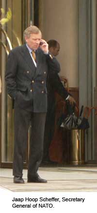 A French Bilderberger wished to know if the impending attack on Iran would involve the United States and Israel working in tandem or "would it be a NATO operation?" The question was directed at NATO´s Secretary General Jaap G. de Hoop Scheffer. Another European Bilderberger wanted to know how the US was planning to cope with three wars simultaneously, referring to Iraq, Afghanistan and now Iran. The reader should be reminded that there are now 150,000 US troops deployed in Iraq who are unable to move to another theatre of operations because of effective resistance tactics.