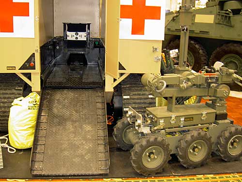 As early as March or April, 18 units of the Talon -- a model armed with automatic weapons -- are scheduled to report for duty in Iraq. Around the same time, the first prototypes of a new, unmanned ambulance should be ready for the Army to start testing. In a warren of hangar-sized hotel ballrooms in Orlando, military engineers this week showed off their next generation of robots, as they got the machines ready for the war zone.